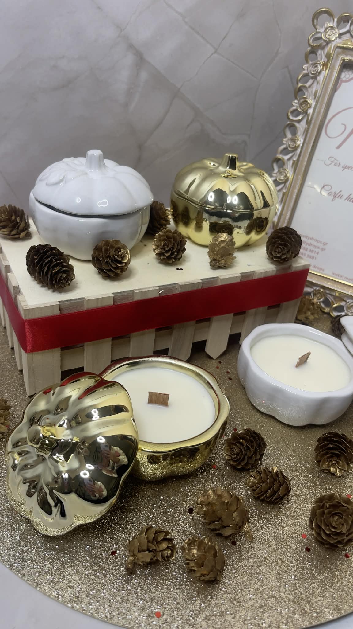 Κεραμική μικρή κολοκύθα με κερί σόγιας σε άσπρο και χρυσό