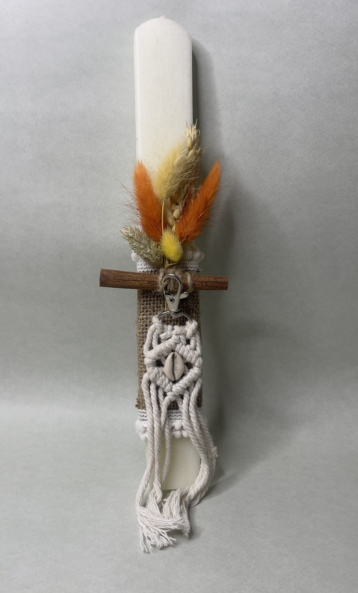 Λαμπάδα Boho με Μακραμέ Μπρελόκ & Αποξηραμένα Άνθη.