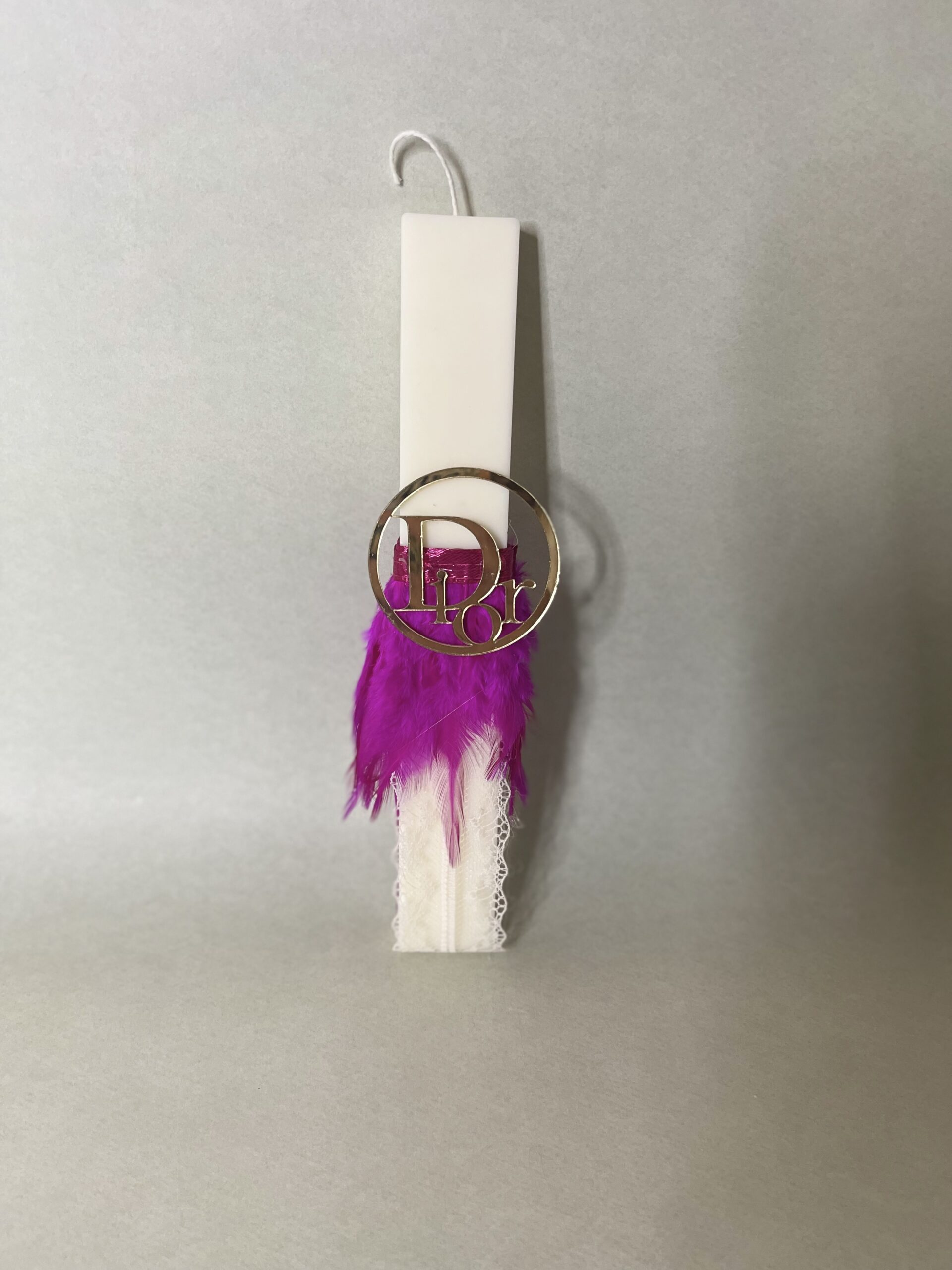 Πλούσια, αιθέρια φτερά και φίνα δαντέλα αγκαλιάζουν το σώμα της λαμπάδας.